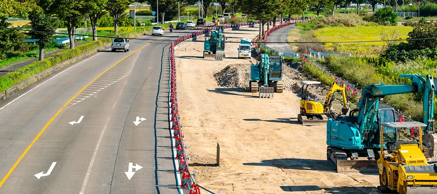 道路舗装工事、下水道工事、河川工事、造成工事、公園整備など、幅広い土木工事に対応。